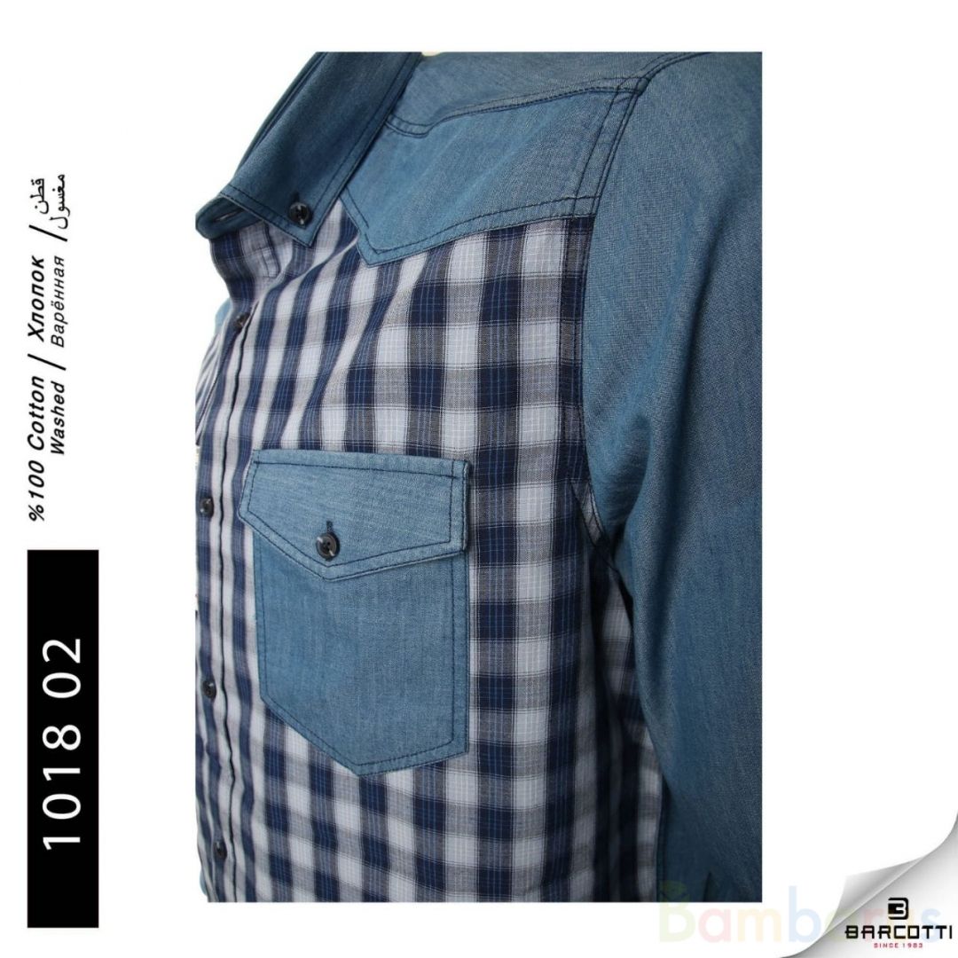 Стильная рубашка джинсовый покрой в клетку. Выполнена из мягкого «дышащего» хлопка. Элегантный вариант на все случаи:
