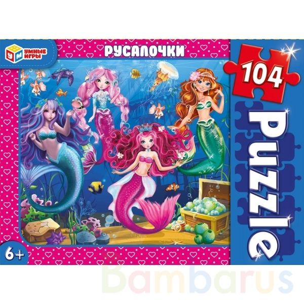 Классические пазлы в коробке «Русалочки» ТМ «Умные игры» непременно понравятся маленькому любознайке:- 104 детали- красивое изображение с волшебными персонажами- насыщенные цвета- все элементы хорошо и плотно соединяются друг с другомЗадача ребёнка – в правильной последовательности соединить элемен…