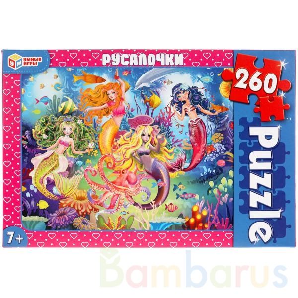 Классические пазлы в коробке «Русалочки» ТМ «Умные игры» непременно понравятся маленькой любознайке:- 260 деталей- красивое изображение с волшебными персонажами- насыщенные цвета- все элементы хорошо и плотно соединяются друг с другомЗадача ребёнка – в правильной последовательности соединить элемен…