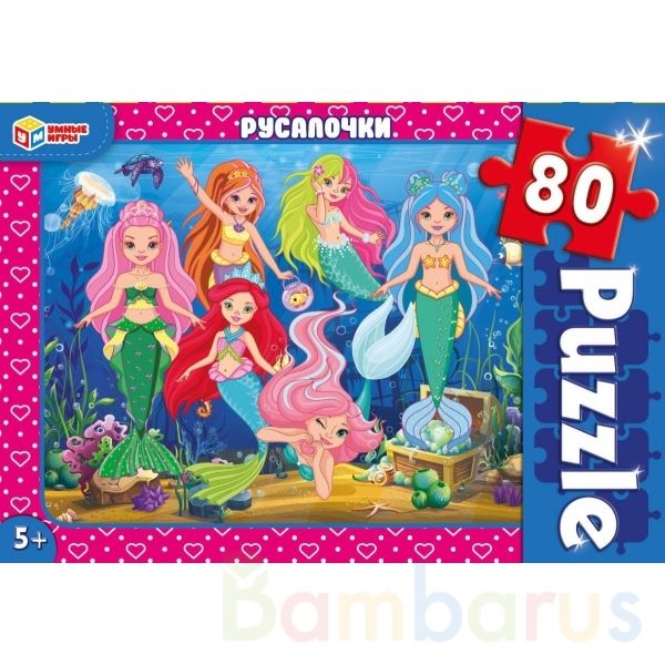 Классические пазлы в коробке «Русалочки» ТМ «Умные игры» непременно понравятся маленькой любознайке:- 80 деталей- красивое изображение с волшебными персонажами- насыщенные цвета- все элементы хорошо и плотно соединяются друг с другомЗадача ребёнка – в правильной последовательности соединить элемент…