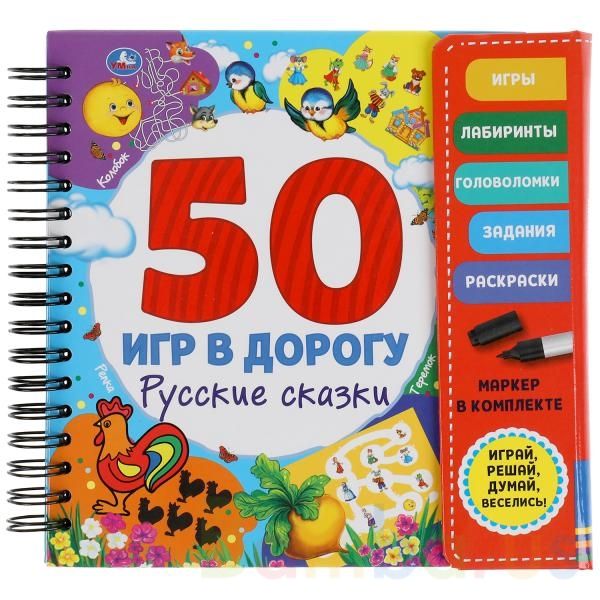 Блокнот на спирали с маркером «50 игр в дорогу. Русские сказки» ТМ «УМка» непременно понравится маленьким любознайкам:
