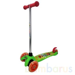 Данная модель непременно понравится маленькому непоседе своим дизайном и удобством в эксплуатации. Мягкие колёса с подшипниками ABEC-7 сделают поездку максимально удобной, а нескользящая платформа, удобные ручки и простая система торможения обеспечат безопасность во время катания. Колёса в темноте светятся разноцветными огоньками. Самокат легко управляется наклоном руля.