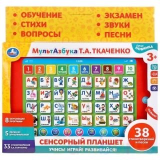 Обучающий сенсорный планшет «МультАзбука» ТМ «УМка» создан заслуженным логопедом-практиком Т.А.Ткаченко для первого обучения чтению:
