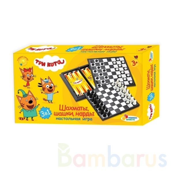 Набор магнитных настольных игр 3 в 1 «Три кота. Шахматы – шашки - нарды» ТМ «Играем вместе» – увлекательный и полезный досуг детей и взрослых.
