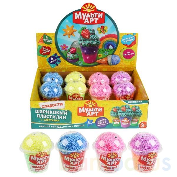 Набор для творчества «Шариковый пластилин с блёстками. Мороженое» ТМ «Мульти Арт» - отличный подарок для маленьких фантазёров и творцов.