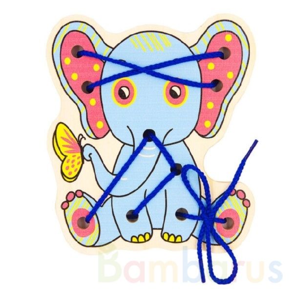 - деревянная пластина в форме слонёнка с отверстиями для продевания шнурков