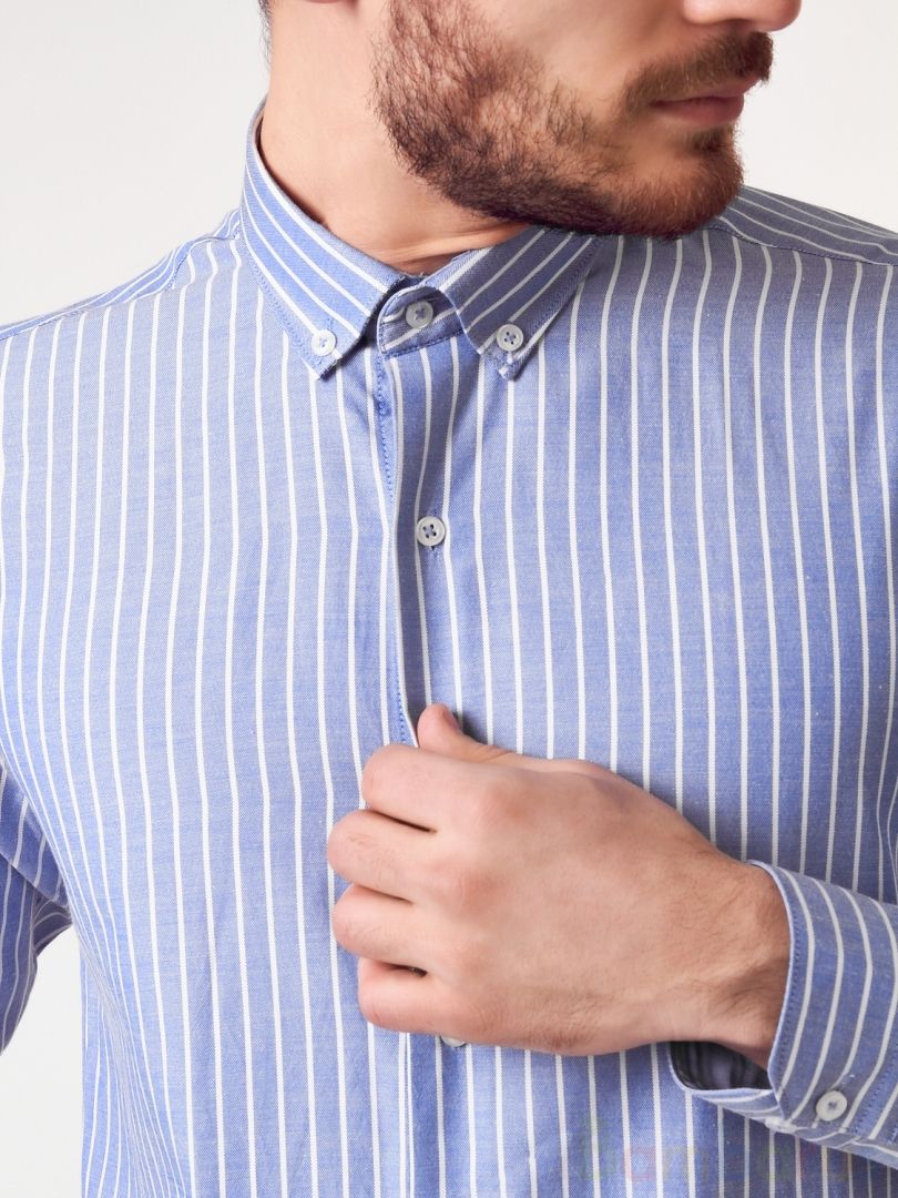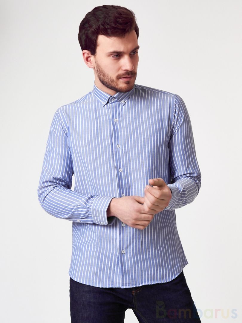 Сине-белая Мужская Рубашка бренда Damon с бесплатной доставкой по всему России и СНГ. Страна Производства Турция.