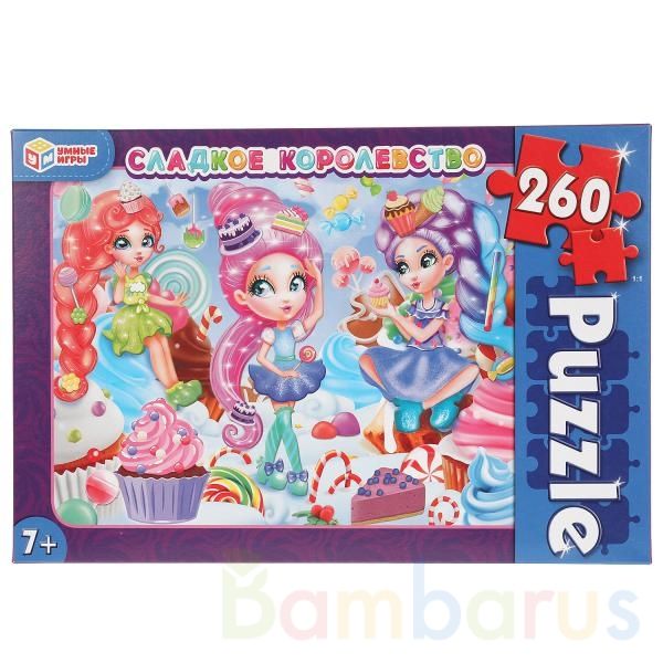 Классические пазлы в коробке «Сладкое королевство» ТМ «Умные игры» непременно понравятся маленькому любознайке:- 260 деталей- красивое изображение с волшебными персонажами- насыщенные цвета- все элементы хорошо и плотно соединяются друг с другомЗадача ребёнка – в правильной последовательности соеди…