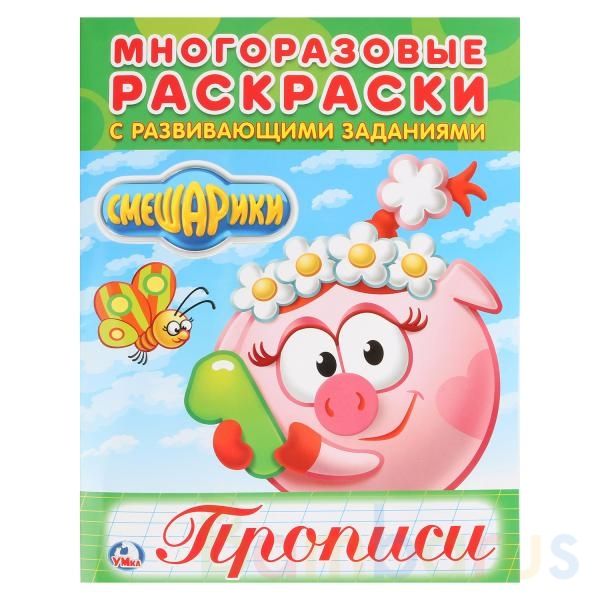 Многоразовая раскраска с прописями «Смешарики» ТМ «УМка» - отличный развивающий подарок для маленьких поклонников одноимённого мультсериала: