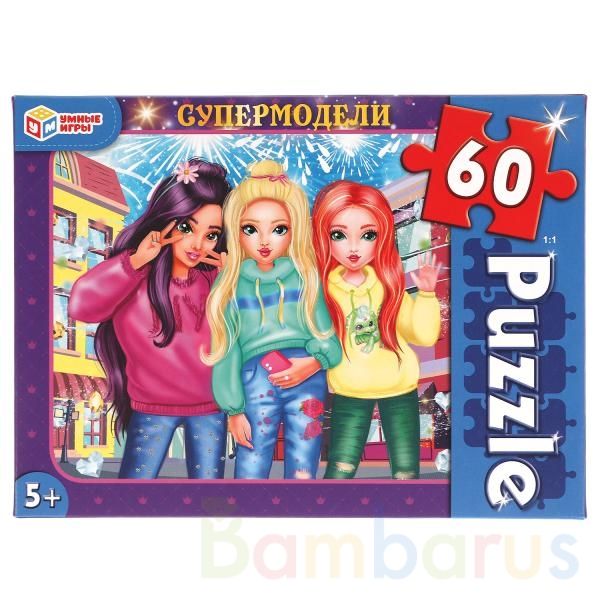 Классические пазлы в коробке «Супермодели» ТМ «Умные игры» непременно понравятся детям:- 60 деталей- красивое изображение с очаровательными персонажами- насыщенные цвета- все элементы хорошо и плотно соединяются друг с другомЗадача ребёнка – в правильной последовательности соединить элементы пазла …