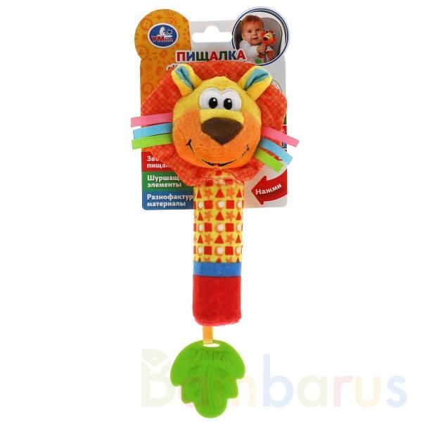 Текстильная погремушка с пищалкой «Лев» ТМ «УМка» разработана специально для самых маленьких:
