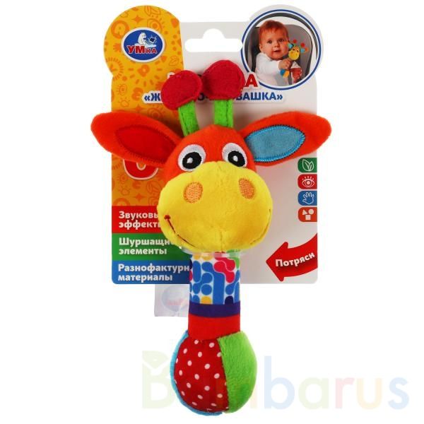 Текстильная погремушка с мячиком «Жираф» ТМ «УМка» разработана специально для самых маленьких: