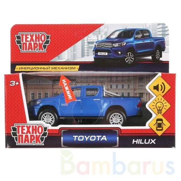 Металлическая модель «Toyota Hilux» ТМ «Технопарк» - прекрасный подарок для ребёнка:- световые эффекты- звуковое сопровождение- открываются передние двери- инерционный механизм (поставьте машинку на ровную поверхность, потяните за корпус назад, отпустите и она начнёт быстро двигаться вперёд)Металли…