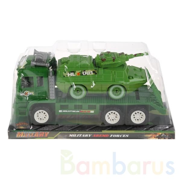 Набор автомобилей 2 в 1:- армейский трейлер- танкЦелый набор машинок вместо одной! Такой подарок оценит любой мальчишка. У трейлер шесть колёс, поэтому он легко перевозит танк.Набор пригодится в сюжетно-ролевых играх. Они помогают детям осваивать новые социальные роли и развивают фантазию. Машинки …