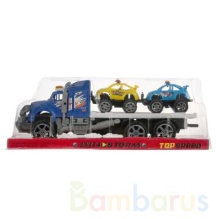 Инерционная машинка «Трейлер» + 2 машинки порадует ребёнка ярким цветом, скоростью и функциями 4 в 1: