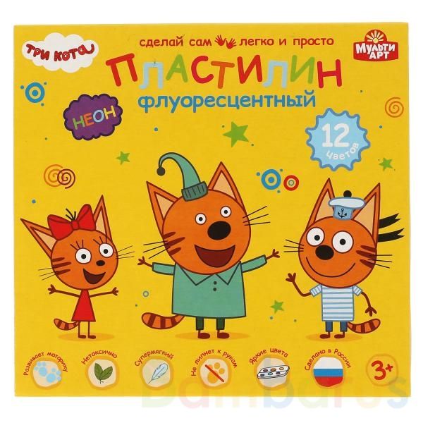 Неоновый пластилин «Три кота» ТМ «МультиАрт» – отличный подарок для развития творческих способностей ребёнка: