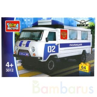 Конструктор "Полиция: УАЗ 452" совмещает в себе две функции: ребёнок собирает модель машины и играет с ней, придумывая разные сюжеты. В набор входит 64 детали. Краска стойкая, не токсичная, поэтому элементы безопасны при использовании. У каждого блока есть прочное крепление, колёса подвижные. Совместим с конструкторами мировых производителей. Собирая игрушку, ребёнок развивает мелкую моторику рук, мышление, внимание, усидчивость и логику. Рекомендуется детям с 4 лет. Изготовлено по лицензии ОАО "УАЗ".