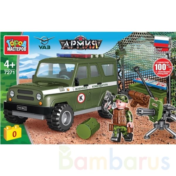 Конструктор «УАЗ Hunter на военной базе» из серии «Армия» ТМ «Город мастеров» понравится маленьким героям.