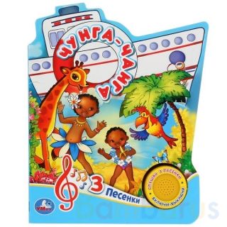Музыкальная книжка «Чунга-Чанга» ТМ «УМка» станет прекрасным подарком для ребёнка.Комплектация и функции:- 1 звуковая кнопка- 3 песенки- история - красочные иллюстрации- фигурная вырубкаКнижка создана по мотивам мультфильма «Катерок». Ребёнок будет с удовольствием рассматривать яркие страницы, слуш…