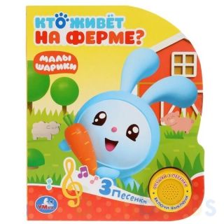 Развивающая музыкальная книжка «Малышарики. Кто живёт на ферме?» с 1 кнопочкой и 3 песнями ТМ «УМка».