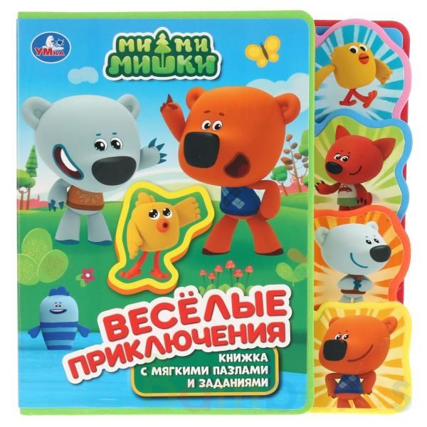 Книжка с мягкими пазлами и заданиями Весёлые приключения Ми-ми-мишки.Книжка с мягкими пазлами разработана для самых маленьких. Она в игровой форме познакомит ребёнка с приключениями любимых героев. На каждом развороте малыша ждёт сюрприз под фигурными пазлами.