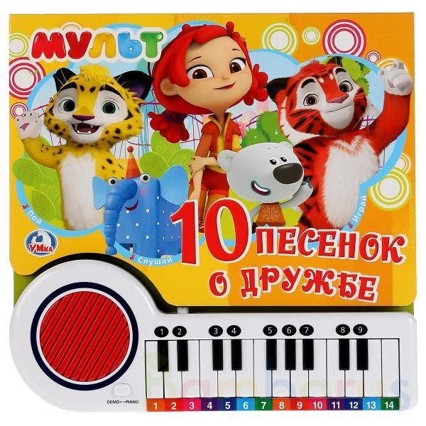 Музыкальная книжка-пианино «Мульт. 10 песенок о дружбе» ТМ «УМка» развивает:
