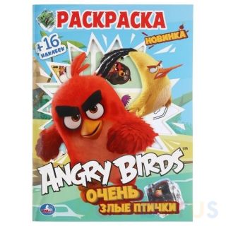 Раскраска с вырубкой в обложке и наклейками «Энгри Бёрдс. Очень злые птички» из серии «Первая раскраска» ТМ «УМка» станет прекрасным подарком для ребёнка: