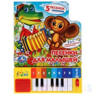 Книга-пианино «Песенки для малышей» ТМ «УМка» станет прекрасным подарком для ребёнка:- 5 песен из м/ф: «Песенка Чебурашки», «Песенка Винни-Пуха», «Чиполлино», «Песенка Мамонтёнка», «Колыбельная Медведицы»- режим пианино- переключатель «Вкл./Выкл.»На каждой страничке крупные красивые иллюстрации с к…