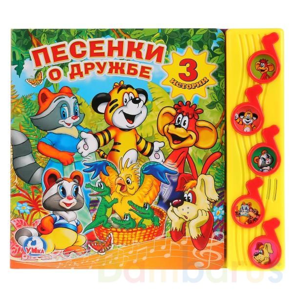 Музыкальная книга «Песенка о дружбе» ТМ «УМка» станет прекрасным подарком для вашего малыша:- 5 звуковых кнопок- 5 известных песенок: «Жить в своём доме, всегда одному...», «Дорога», «От улыбки», «Дружба крепкая», «Бюро находок»- 3 истории по мотивам м/ф: «По дороге с облаками» (А. Костинский), «К…