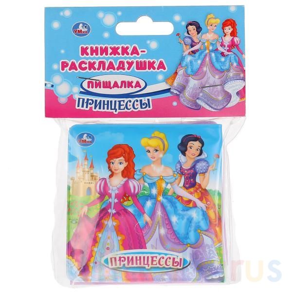Книжка-раскладушка для ванны «Принцессы» ТМ «УМка»:- красочные иллюстрации - имена известных мультипликационных героинь- пищалка- можно использовать во время кормления и прогулки- не промокает, легко моетсяЯркая книжка для ванны с пищалкой очень понравятся малышу – она развлечёт его во время купани…