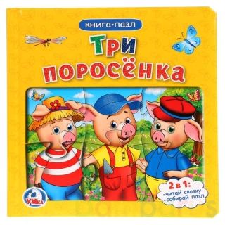 Данная книга выполняет сразу 2 функции: это и книга для чтения, и игра в пазлы. На каждом развороте малыша ждёт интересное повествование о приключениях трёх поросят, а также яркий пазл с изображением персонажей сказки. Книжка изготовлена из плотного картона, поэтому мамы могут не опасаться, что ребёнок порвёт странички. Благодаря удобному формату книгу можно взять с собой в дорогу.