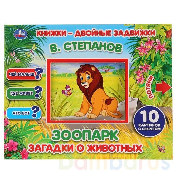 Книжки-двойные задвижки «В. Степанов. Зоопарк: загадки о животных» ТМ «УМка» станет прекрасным подарком для ребёнка: