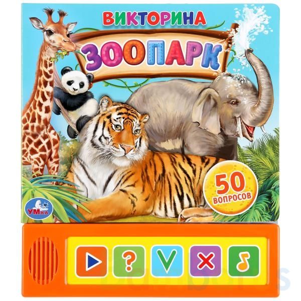 Книга в лёгкой игровой форме познакомит малыша с обитателями зоопарка. Для закрепления полученных знаний предлагается ответить на вопросы викторины, используя функциональные кнопки на панели снизу. Благодаря компактному формату книгу удобно взять с собой в дорогу.