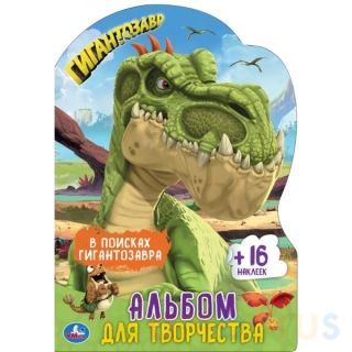 Развивающий альбом для творчества с наклейками «В поисках гигантозавра» ТМ «УМка» станет прекрасным подарком для поклонников мультсериала «Гигантозавр»: