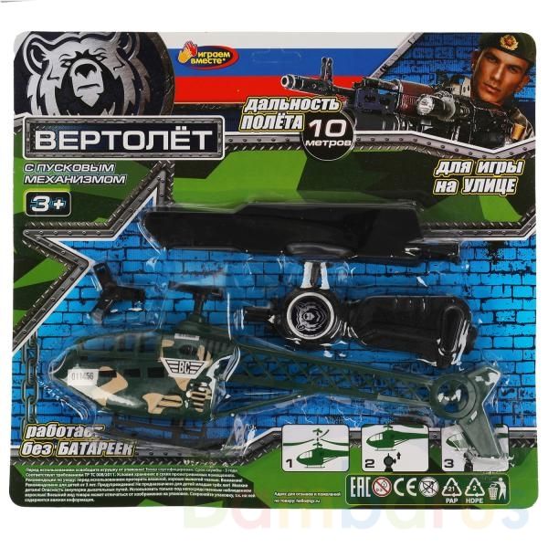 Вертолёт с пусковым механизмом ТМ «Играем вместе» непременно понравится юному авиатору:- дальность полёта 10 м- стильный дизайн- работает без батареек- для игр на улицеВашему ребёнку непременно понравится этот необычный вертолёт. Запустить его в воздух очень легко, нужно лишь поставить его на верху…
