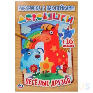 Раскраска с наклейками «Деревяшки. Весёлые друзья» из серии «Наклей и раскрась» ТМ «УМка»: