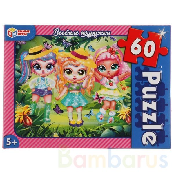 Классические пазлы в коробке «Весёлые подружки» ТМ «Умные игры» непременно понравятся детям:- 60 деталей- красивое изображение с очаровательными персонажами- насыщенные цвета- все элементы хорошо и плотно соединяются друг с другомЗадача ребёнка – в правильной последовательности соединить элементы п…