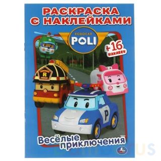 Раскраска с наклейками «Робокар Поли. Весёлые приключения» из серии «Наклей и раскрась» ТМ «УМка» обязательно понравится детям: