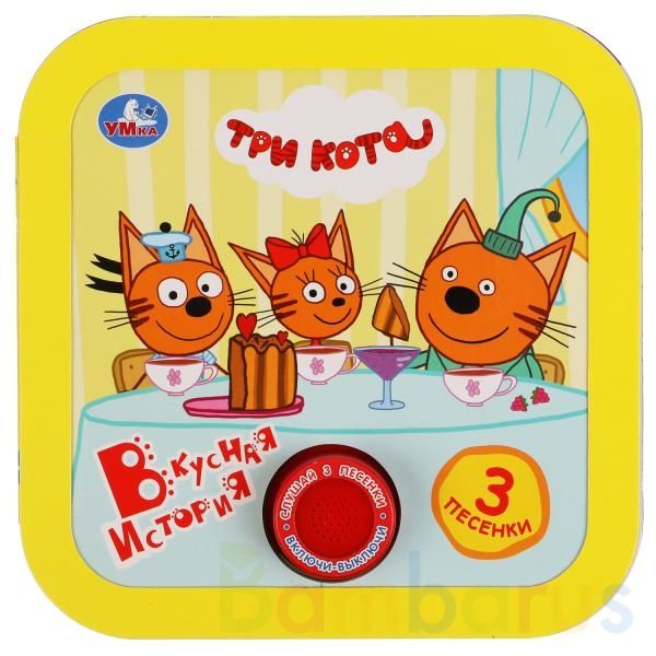 Музыкальная книга «Три кота. Вкусная история» ТМ «УМка» станет прекрасным подарком для маленьких поклонников известного мультсериала про весёлых и любознательных котят:
