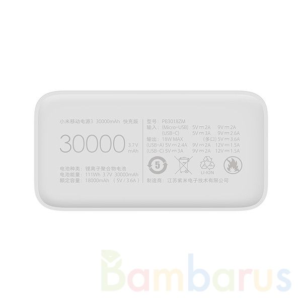 Внешний аккумулятор Xiaomi Mi Power Bank 3 30000 mAh White