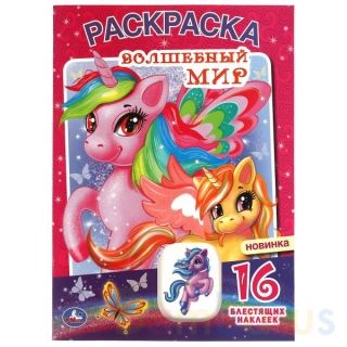 Раскраска с блестящими наклейками и вырубкой «Волшебный мир» ТМ «УМка» станет отличным подарком для юных художников: