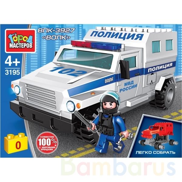 Конструктор «Бронемашина ВПК-3927 «Волк» ТМ «Город мастеров» понравится маленьким защитникам правопорядка.