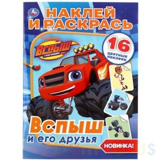 Раскраска «Вспыш и его друзья» из серии «Наклей и раскрась» ТМ «УМка» обязательно понравится вашему ребёнку: