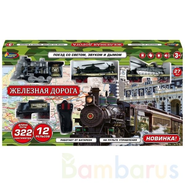 Железная дорога на пульте управления ТМ «Играем вместе» станет отличным подарком для ребёнка:- световые эффекты- звуковое сопровождение- дым- длина пути 322 см- 12 рельсов- реалистичный дизайн- пульт работает на частоте 27 МГцЭта красочная железная дорога непременно понравится малышу. Ребёнок с удо…