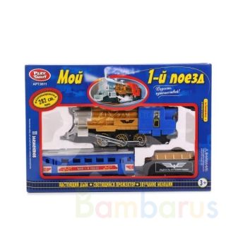 Железная дорога «Мой 1-й поезд»:- длина полотна 282 см (11 элементов)- паровоз и 2 вагона- мелодии- свет прожектора- настоящий дымТакая железная дорога станет прекрасным подарком для вашего ребенка. Поезд, похожий на настоящий состав конца ХIX - начала ХХ века, понравится малышу. Все элементы легко…