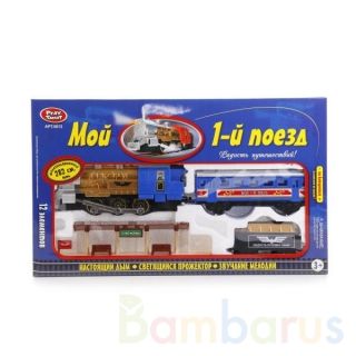 Железная дорога «Мой 1-й поезд»:- длина полотна 282 см (12 элементов)- станция- паровоз и 2 вагона- мелодии- свет прожектора- настоящий дымТакая железная дорога станет прекрасным подарком для вашего ребенка. Поезд, похожий на настоящий состав конца ХIX - начала ХХ века, понравится малышу. А ещё ест…