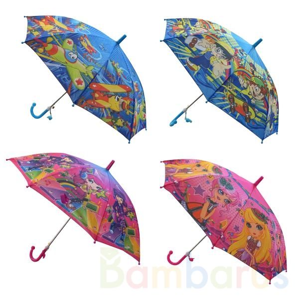 Дождливая погода станет долгожданным событием с новым зонтом. Интересные персонажи на куполе зонта будут сопровождать ребёнка на протяжении всей прогулки, а сам зонт защитит от дождя.